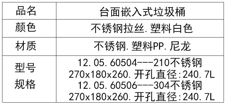嵌入式垃圾桶厨房橱柜圆形垃圾桶