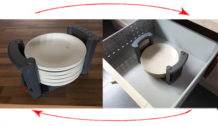 厨房抽屉碗碟收纳架 橱柜抽屉伸缩碗盘置物架 餐盘移动碟架提盘器