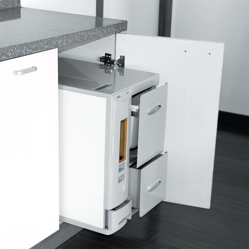 大米、面粉、杂粮三合一综合收纳 带导轨,安装隐藏于橱柜内 31KG大容量。左侧15KG大米,右上角8KG面粉, 右下角8KG杂粮 密封性能不错。防虫防蛀 环保材质,无毒无味 分类有序柜内收纳 柜内尺寸要求 配国产普通导轨,无连门配件 简易的导轨底座分离刺爪