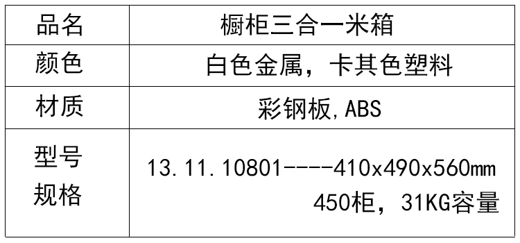 产品名称:嵌入式厨房米面收纳柜三合一米箱