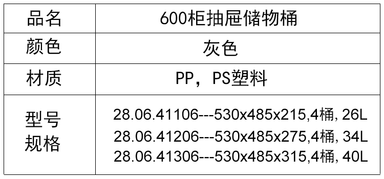 产品名称:600柜橱柜抽屉储物桶分类收纳桶