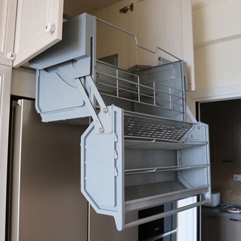 双体收纳得冰箱顶柜橱柜收纳篮升降高身拉篮两级开门大怪物下拉篮