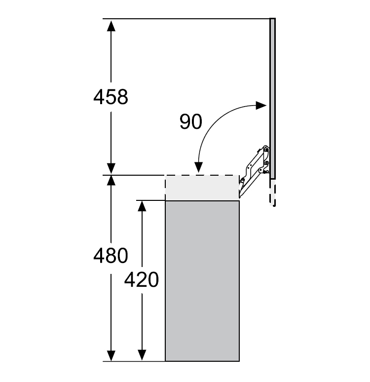 垂直上移橱柜门支撑开合示意图