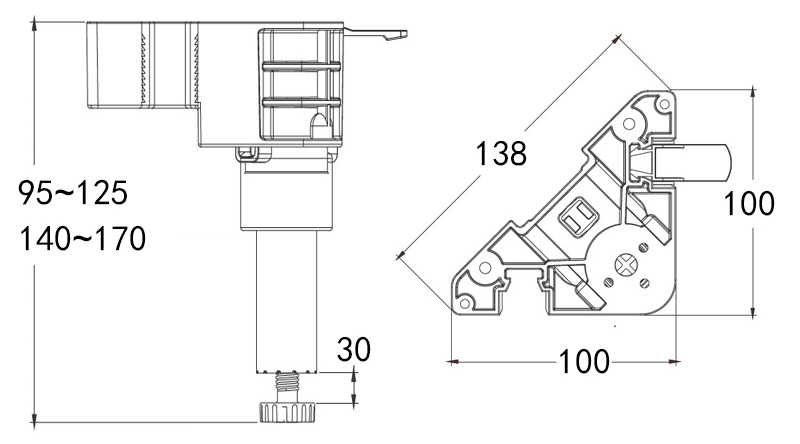 大范围两段高度调节:95~125mm;140~170mm