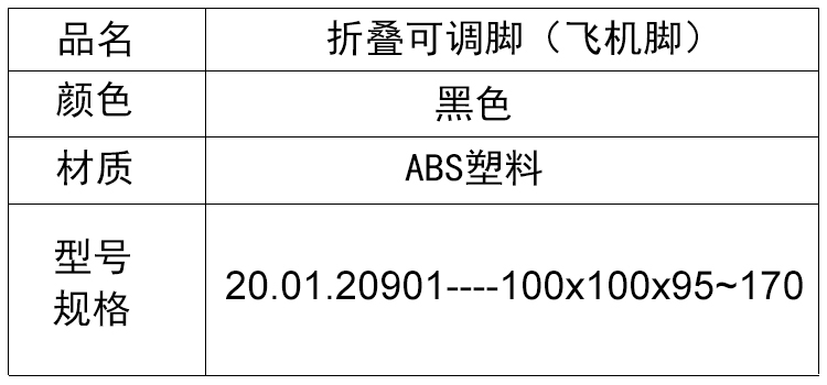 产品名称:ABS塑料折叠可调脚橱柜飞机脚