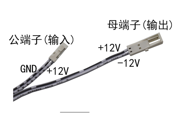 输入端正负极区分:有X号的是正极,有黑色间条的是负极
