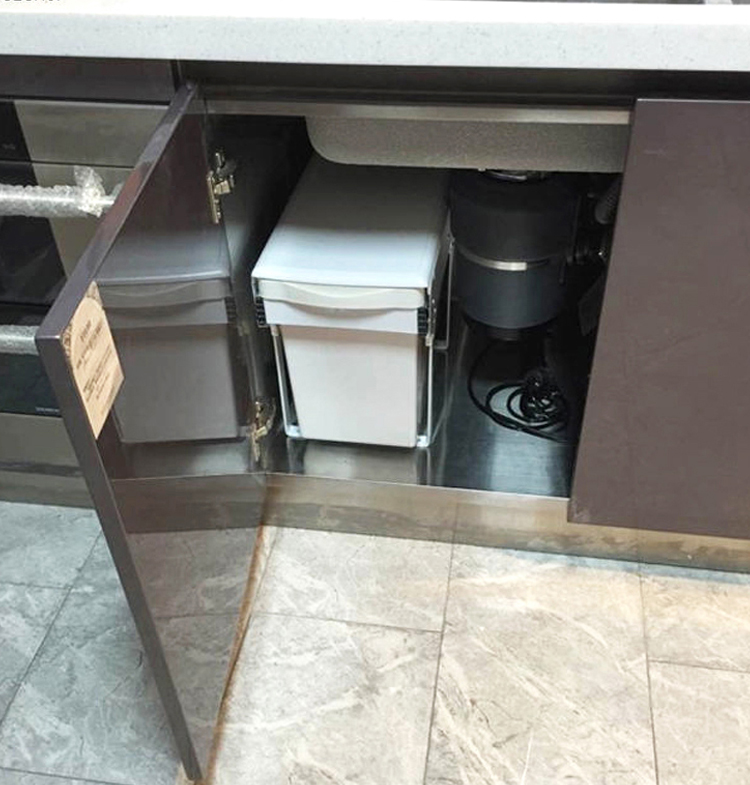 推拉式抽拉抽屉式隐藏式橱柜垃圾桶 水槽柜收纳柜内分类桶可连门