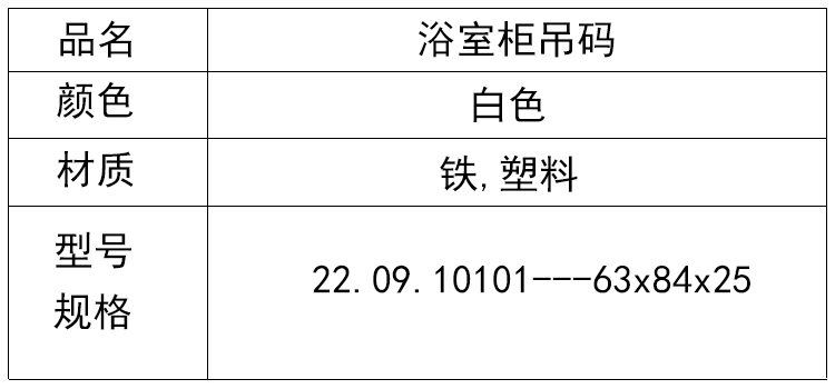 产品名称:浴室柜吊码橱柜壁柜吊柜挂码