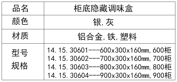 产品名称:柜底隐藏调味盒吊柜下收纳盒下翻架