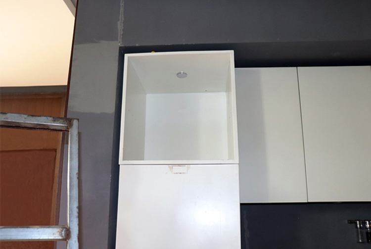 双体收纳得冰箱顶柜升降拉篮联动升降机安装示意图