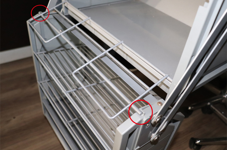 一人扶住收纳得,另一人固定侧板机箱螺丝