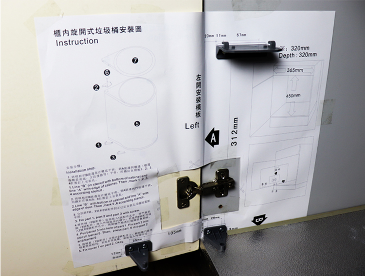 产品名称:HOFFNUNG旋开橱柜柜内垃圾桶安装教程产品型号: 12.02.30504产品详情: