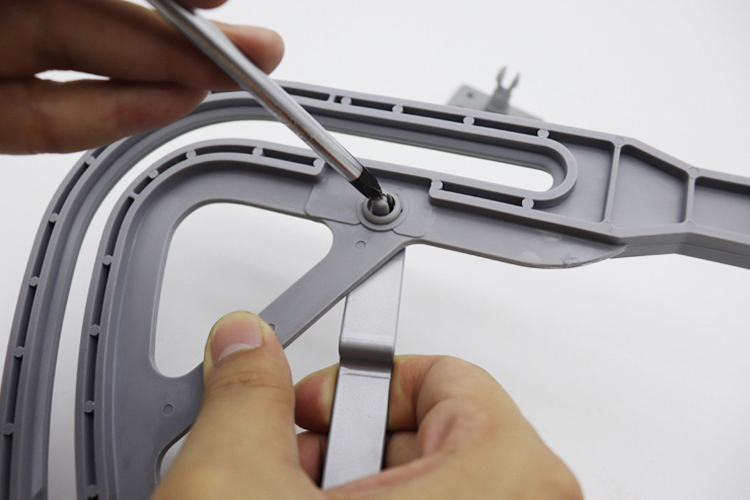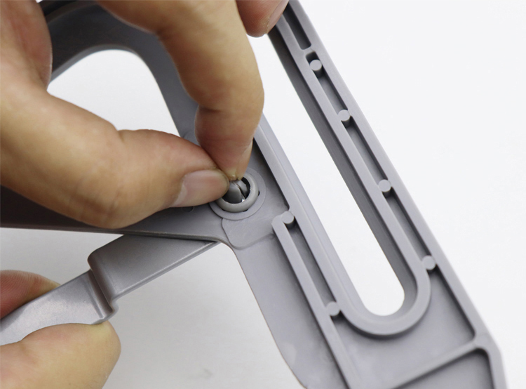 L型运动臂从穿孔处套入桶底滑轮(注意方向)