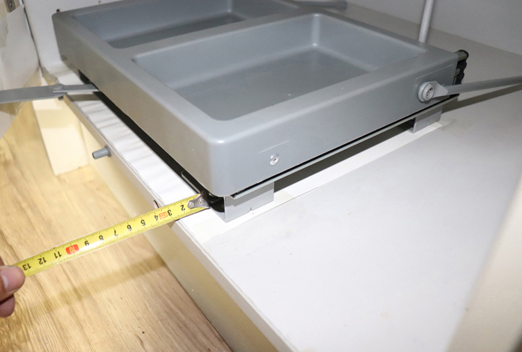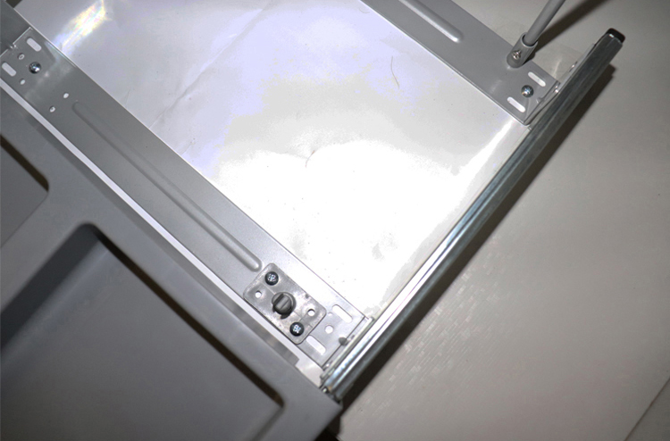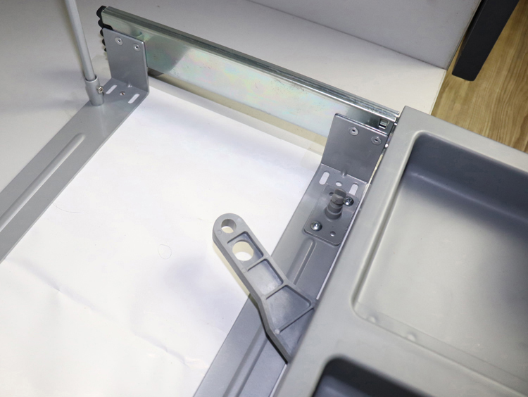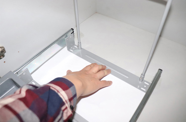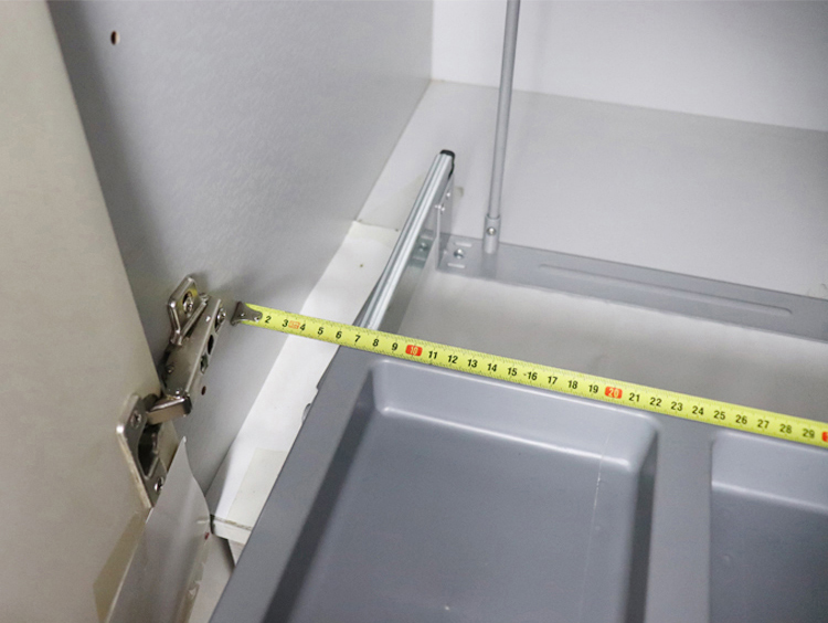 放上垃圾桶,拉出导轨,对正安装孔位