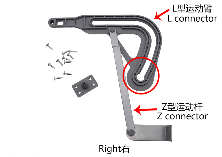 L型运动臂Z型运动杆组件(出厂默认状态是右开门的)