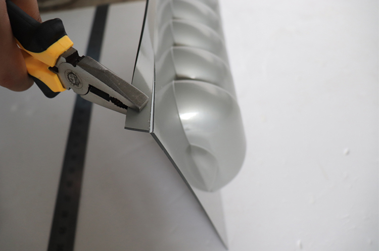 压住铁尺,用壁纸刀划痕